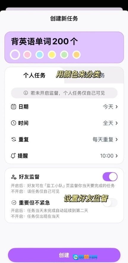 系统配备了颜色标识功能,用户能够根据任务的类别自主设置对应的色彩,以此来区分各类不同的事务,进而增强视觉上的辨识度。