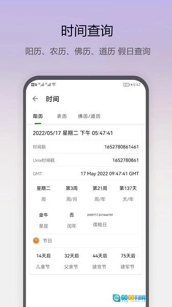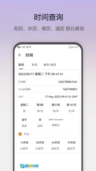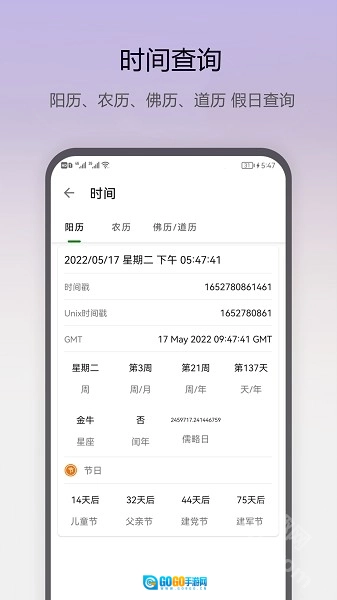 时间信息获取:获取并展示阴历、阳历、佛历、道历等各类日期以及与之相关的节日信息