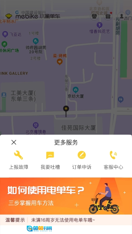 查找车辆:在主界面能够查看周边可使用的电动单车,还能借助导航功能前往车辆所在位置。