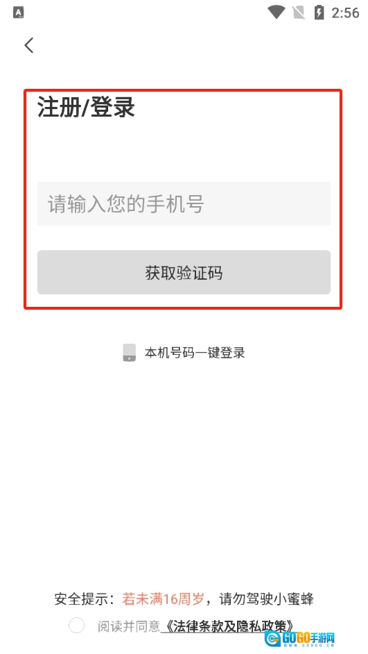 在魔趣网平台完成注册并安装小蜜单车应用,之后打开该应用,使用手机号进行注册操作。