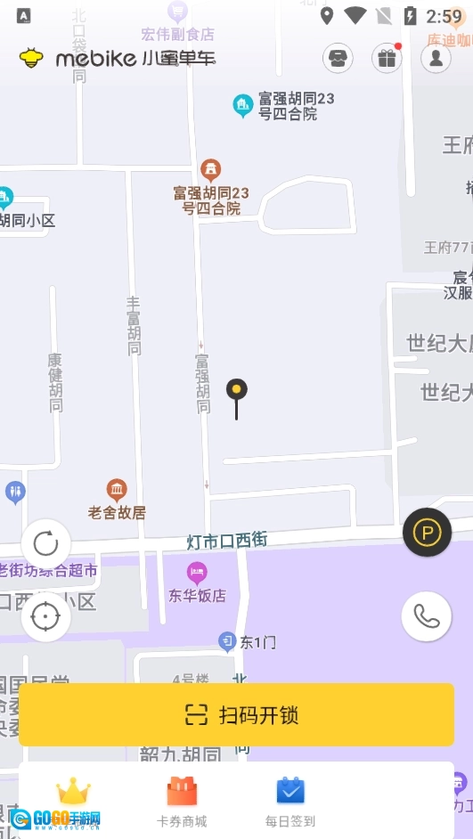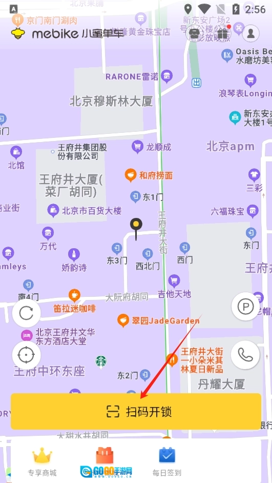 扫码用车:找到车辆后,点击下方的“扫码开锁”功能即可解锁车辆,开启骑行。