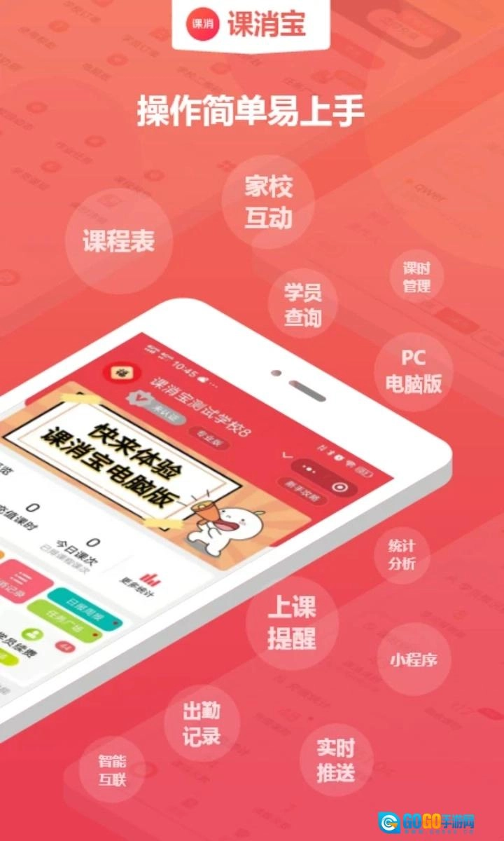 课消宝适用于K12、音乐、美术、体育、幼儿教育、职业培训等各类培训学校的学员课时消耗管理,支持课消记录微信推送提醒与课消统计实时分析功能,助力教务管理人员摆脱繁杂工作,提升管理效率。作为一款免费的培训学校消课管理工具软件,它由光标科技开发,可帮助众多培训学校便捷管理学生课时及消课数据,凭借简单易用的产品体验与快速的更新迭代速度,赢得了用户的普遍认可与好评。