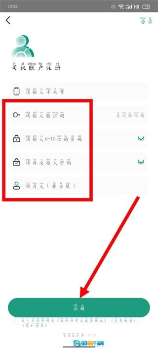 在我的页面,点击司机注册,进入注册页面。