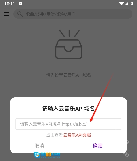 在弹出的窗口中填写云音乐API域名,例如这里演示的是填入网易云音乐的域名。