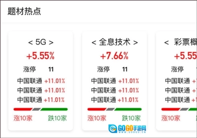 在主界面实时呈现盘中涨幅居前三位的题材板块,同时展示每个题材板块内涨幅前三的个股,以及该题材的涨停家数与涨跌家数情况