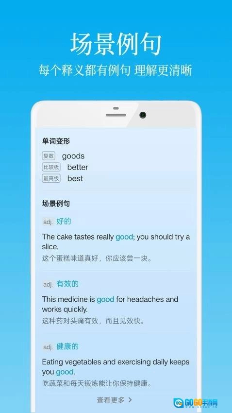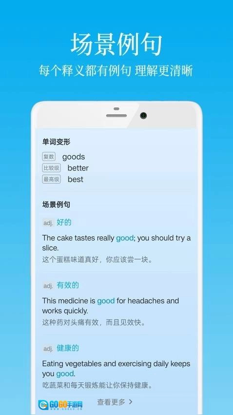 借助遗忘曲线的规律来提醒你按时复习巩固,查询单词时,除了能获取详尽的释义,还可以看到贴合语境的地道例句以及高频的常用搭配。