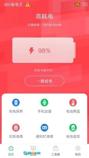 360省电王是一款针对安卓系统的免费省电工具,它能精准预估电池剩余可用时长,让用户随时掌握手机续航情况。软件提供个性化节电模式,可最大程度延长电池使用时间;同时还会推送专业的电池保养知识,帮助用户有效延长电池寿命。此外,用户还能查询开启省电模式后设备的待机时长及多种场景下的使用时间,所有功能均免费,还能解决应用程序自启动的问题。