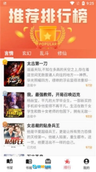 小说排行榜:这款应用程序会向用户展示当前最热门或评分最高的小说,能帮助用户发掘新作品,实用性很强。