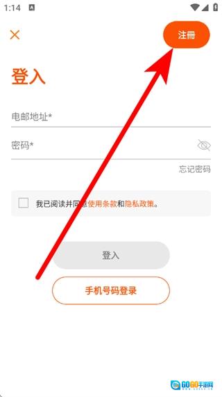 在登录页面,点击右上角注册,进入注册页面。