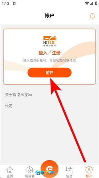在帐户页面,点击前往,进入登录页面。