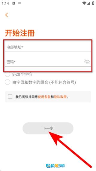 在注册操作中,您需要依次输入电邮地址和密码,勾选“已阅读并同意”相关条款,随后点击“下一步”按钮,即可完成整个注册流程。