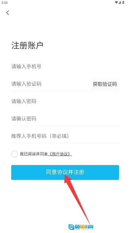 在注册信息页面填写手机号码以获取验证码,接着设置安全密码并同意相关协议,即可完成注册流程。