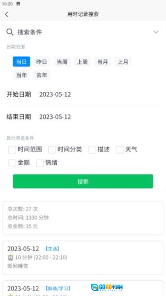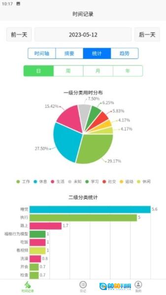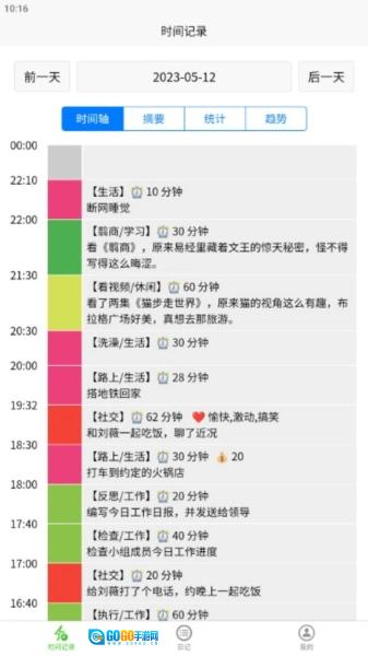 针对时间记录内容的变化趋势进行了分析展示,以便用户便捷查看
