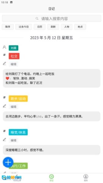 在软件里,用户能够添加日记,把每日发生的事件信息在线记录下来。