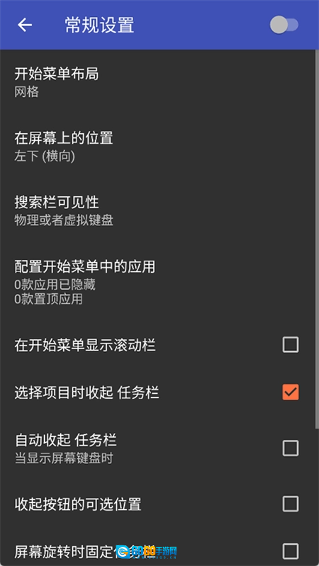 开始菜单——呈现设备上已安装的全部应用程序,能设置成列表形式或网格形式。