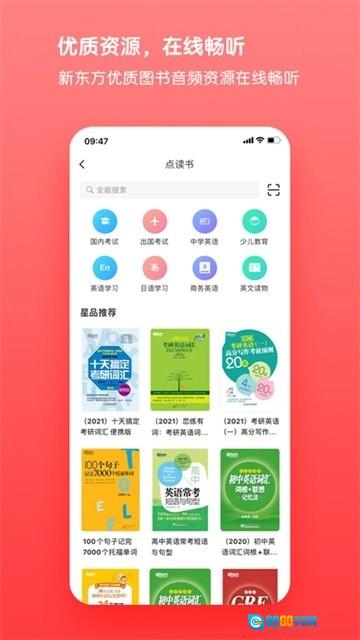 你可以免费获取新东方的优质图书配套音频资源。这些悦耳的声音能让你的耳朵沉浸其中,你可以选择双倍速播放,也能根据需求调整到各种合适的速度。还能设置单轨循环播放,利用好碎片化时间,它会助力你成为更优秀的学习者。