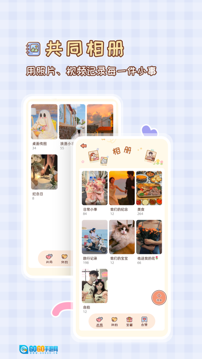纪念日:用于记录恋爱的累计天数以及每一个具有特殊意义的日子,同时会展示这些日子已经过去的时长,以及即将到来的纪念日的倒计时。