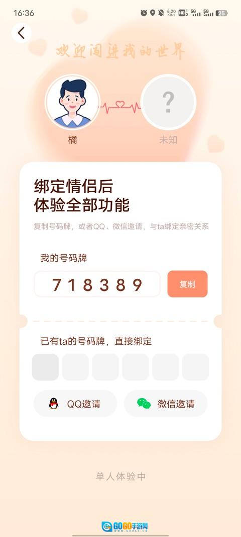 用户可以复制自己的号码牌,通过QQ、微信发送邀请,也能直接填写情侣的号码牌。