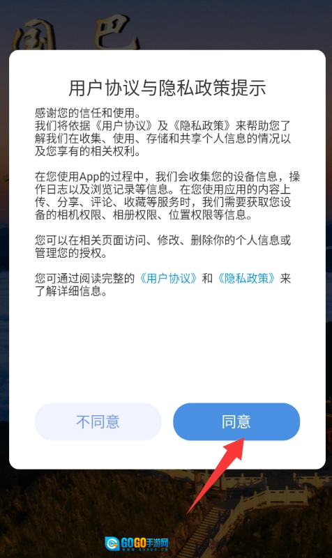 点击用户协议与隐私政策提示里的同意并进入。