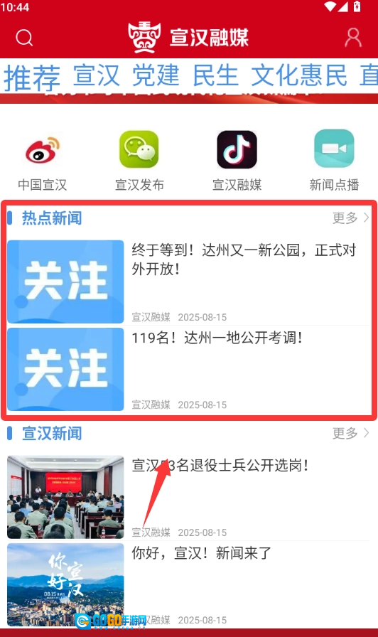 进入软件界面红色框框那里是热点新闻。