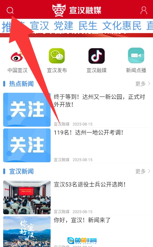红色箭头那里是搜索键,可以搜索你想看的新闻。