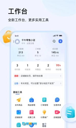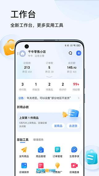 千牛,是淘宝官方认证的店铺管理得力助手。无论是商品上下架操作、交易流程追踪,还是店铺数据解析,都能一键完成,让掌柜们管理店铺既轻松又高效。信息提醒功能十分灵敏,商品更新、新订单生成、退款申请以及各类消息,手机都会即时推送,让你随时掌控网店动态毫无压力。遇到问题能第一时间发现并解决,商品的每一步变化都清晰掌握,打理网店更放心。使用千牛,为商家助力,减少运营精力消耗,增加盈利空间,生意红红火火!