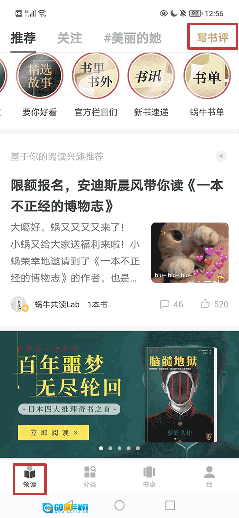 首先,打开应用程序,在领读页面找到并点击右上角的“撰写书评”选项。