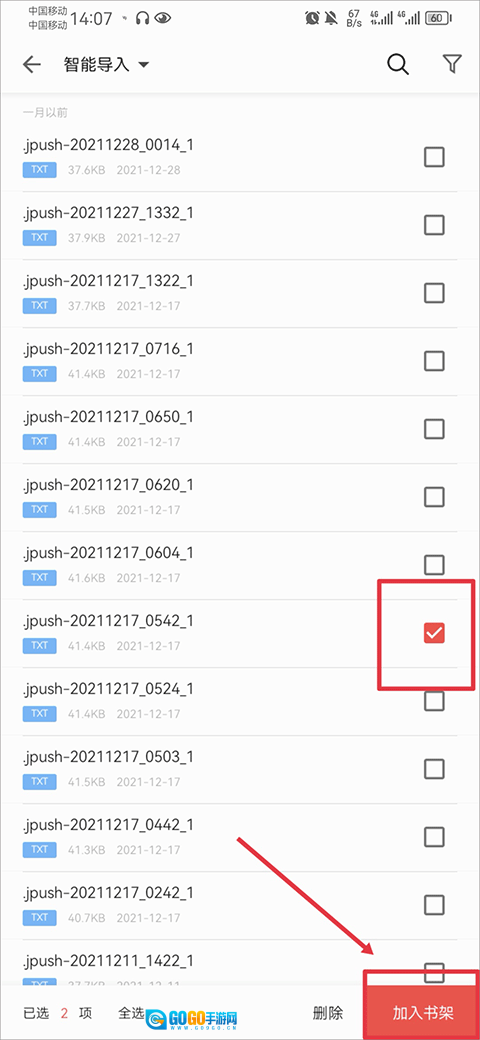 然后等待手机扫描,扫描完成后挑选你想导入的文件并点击添加到书架