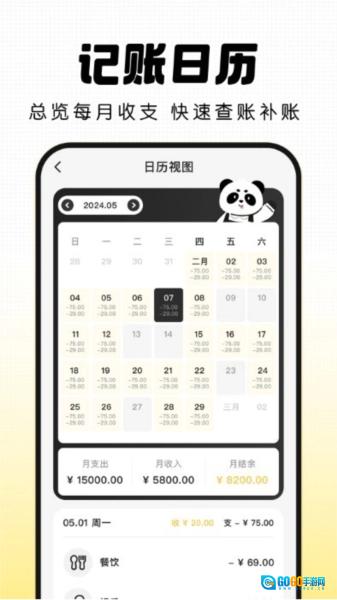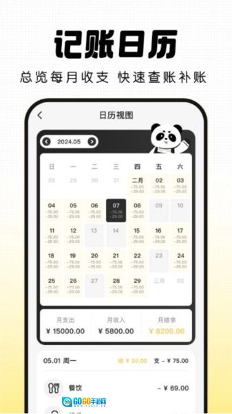 通过日历形式展示每日的收支明细,能够便捷地了解当日及当月的财务情况;收支记录采用不同颜色进行标记,让收入和支出一目了然,便于回顾以往的财务数据。