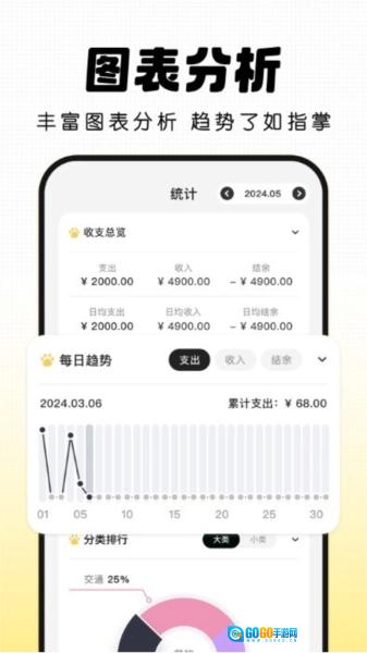 丰富的图表分析,让趋势一目了然,清晰呈现消费分布情况。