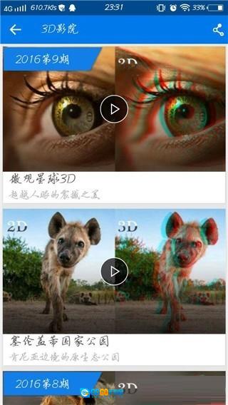 暴风影音手机版的频道每周都会给用户推荐一些3D小视频和电影,随意点开一部观看,等暴风加载完成后就会自动切换到3D模式播放,十分方便。