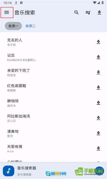 并打开音乐搜索器,点击软件左上方三横杠