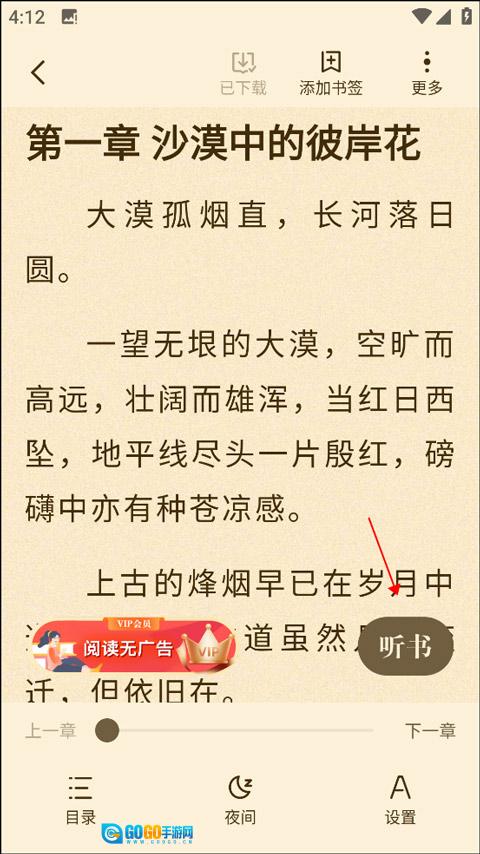 最后选择你需要语言朗读的章节,去体验吧