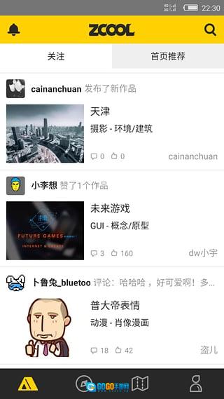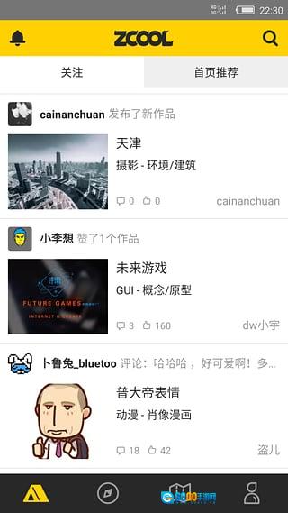 和站酷平台保持同步,实时更新首页呈现的优质设计创意内容,还能即时查看好友的最新动态,比如发布新作品、推荐内容以及评论互动等。