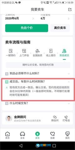 完成认证后,车辆成交的款项会在交易达成后的30分钟内转入您的银行账户,到账速度较快,不过具体到账时间还需以银行的实际处理进度为准。