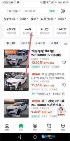 在搜索结果页面,你可以通过点击【价格】按钮或使用【筛选】功能来调整车辆的价格范围。