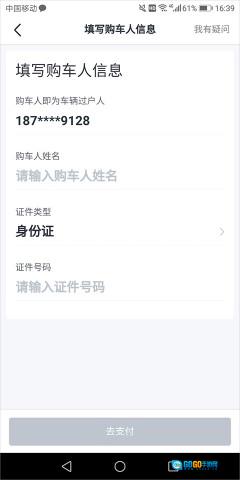 交易达成后点击【立即订购】,填写相关信息,务必保证上牌城市的证件信息准确无误,该服务支持异地提车。
