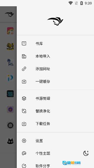 在侧边栏中拥有导入书源,设置,管理等功能;