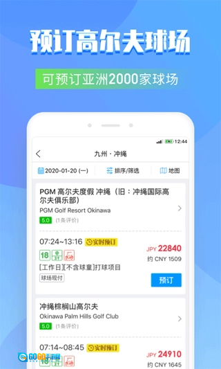 百高是一款专为高尔夫爱好者设计的手机应用,通过它用户能轻松在线预订全球任意高尔夫球场。平台覆盖亚洲2000多家球场资源,支持即时预订,让您随时畅享挥杆乐趣。只需输入目标球场名称,即可快速定位并完成预订,操作便捷高效。除球场预订外,百高还提供酒店及滑雪场的在线预订服务。若预订过程中遇到任何问题,用户可随时联系在线客服,专业团队将即时响应并协助解决。欢迎有需求的用户下载体验,开启便捷的运动休闲之旅。