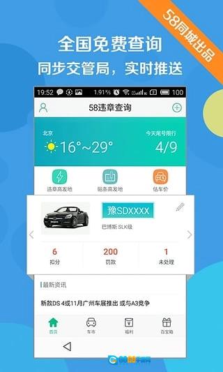 58同城推出的这款工具,能够支持全国三百多个城市的违章查询服务,它会与交管局的数据保持同步,并且可以准确且实时地推送违章相关信息。