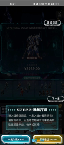 点击进入的页面是一个抽奖界面,这里提供单抽和五抽两种方式,点击“查看所有商品”可以了解抽奖概率,图中的超稀有款就是奖池里的最终大奖。