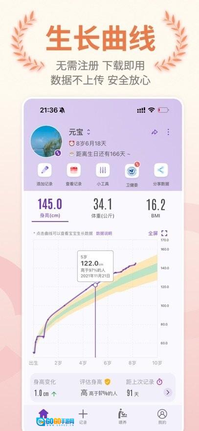 极简操作:只需几次点击,就能完成身高与体重的记录,界面清晰明了,父母上手轻松便捷。