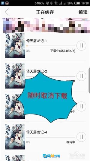 在正在缓存界面,可以随时取消正在的视频。如图所示