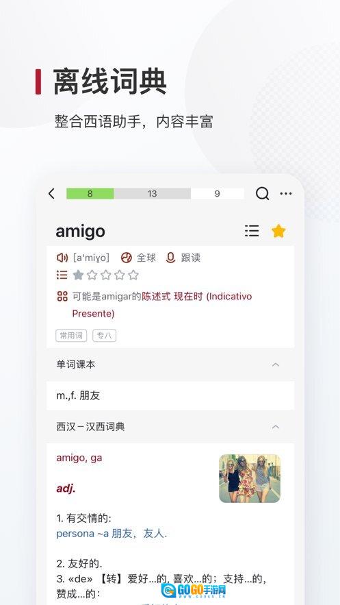 单词释义板块整合了西汉-汉西、西英、西西、近义-反义-派生词等多类权威词库,方便你随时查阅;同时还支持直接访问Wordreference、Linguee、Spanishdict、维基等知名在线西语词典。若想获取更丰富的释义内容,不妨去探索这些优质的词典资源。
