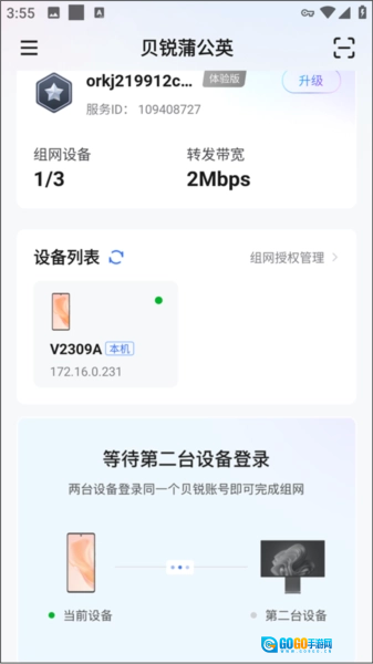 之后我们打开贝锐蒲公英,使用同一个账户登录进去,然后把这里的虚拟地址复制下来。