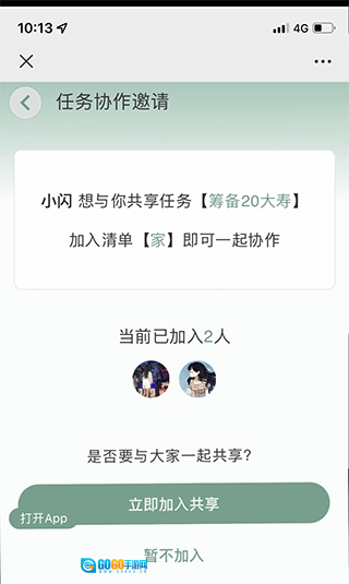 闪点具备任务共享功能,你能够和家人、同事、朋友、舍友一同共享任务,而且闪点支持一键邀请好友来共享任务。