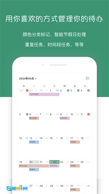 若想更清晰地了解自己每日的工作安排,你可以使用日历视图功能。具体操作是在主界面点击“日历”选项,这样就能按月或按天查看任务了。该功能还支持对任务进行颜色分类标记,并且可以创建时间段任务。