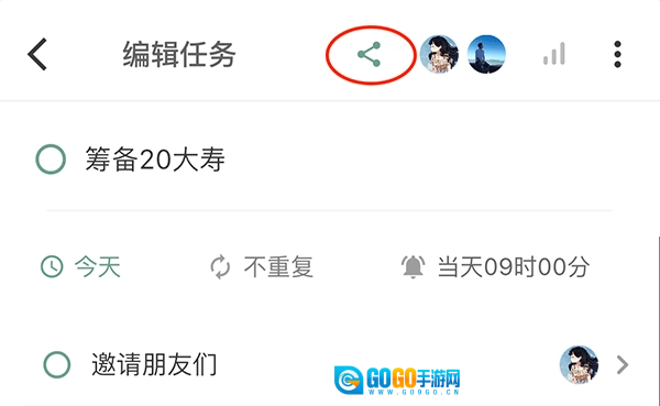 首先,打开你手机里安装好的闪点清单;进入任务详情页后,在页面顶部能找到一个分享按钮;需要注意的是,这个分享按钮并非只在任务详情页存在,在编辑清单的界面同样有一个;点击该按钮,你就会进入分享模式。
