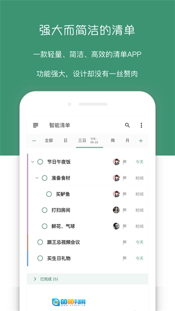 这款工具风格简洁,功能却十分强大,具备丰富的任务管理能力,像日历视图、番茄工作法、分组管理、标签管理、循环提醒、子任务、云同步、多提醒等功能都能支持,而且目前所有功能都可以无限制使用。