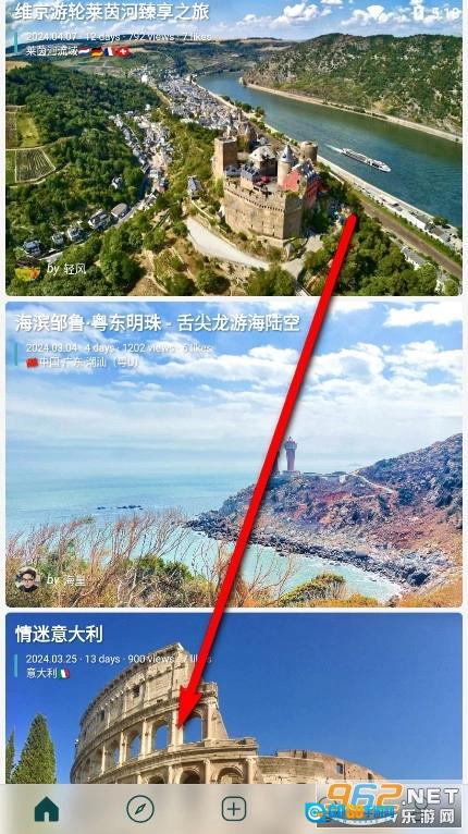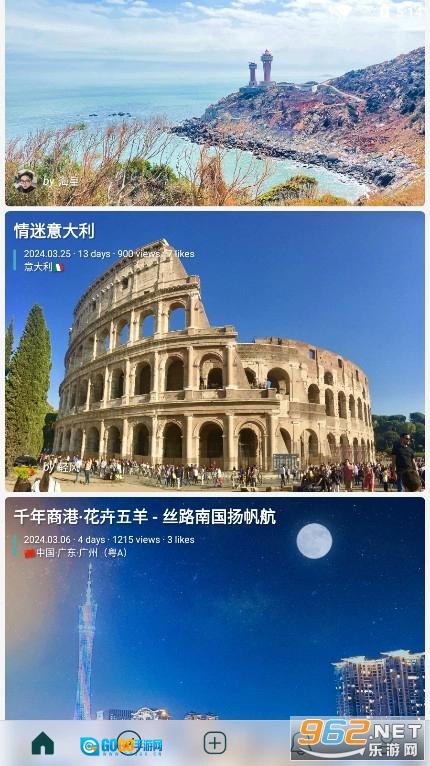 双击打开去看看旅行,在首页能看到各种各样富有创意的出行日记与轨迹分享。